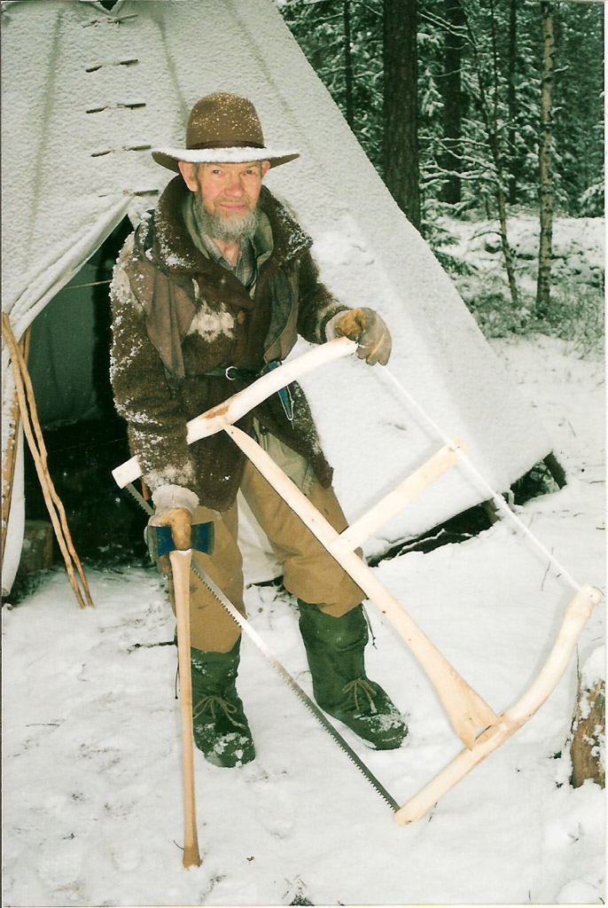 From Heidi in email of 8-9-13 "Oliver made four of these saws that are made for two people to use at the time. He is wearing the first sweather I knitted for him that he, clever as he was, turned into a nice jacket"