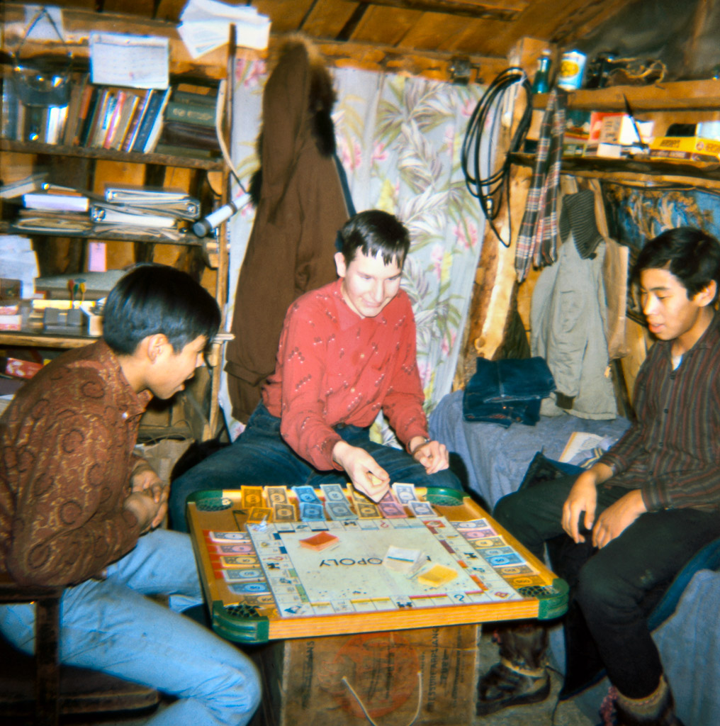 Photos » 1955-1969 Lorenes Alaska slides 1960s Meal time in Kiana. Dora Johnson on the left. Eating frozen fish, dried fish, and seal oil. 1966? Gary, Charlie Tickett and Carroll Grey in our house Charlie sitting on Richard's bed. 1968 Serving at Potlatch 1960s at Sesolik. Forget-me-not. 1960s Ronald&Evelyn Barr with Don&Mary&Alvin anniversary. At our house . 1966? Clara Lee making birch bark baskets. Late 1960s Dorene studying in woodpile. 1968, spring. Main entry door of old house. 1967 Falltime. Looking across Kobuk River. Reindeer herd. 1967 or 68 -Cache built by Richard and Dorene and Gerald 1965 Dorene's birthday in ours house. 1 2 ... 9 ►