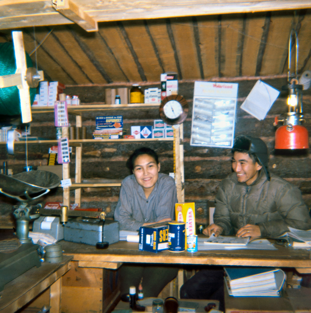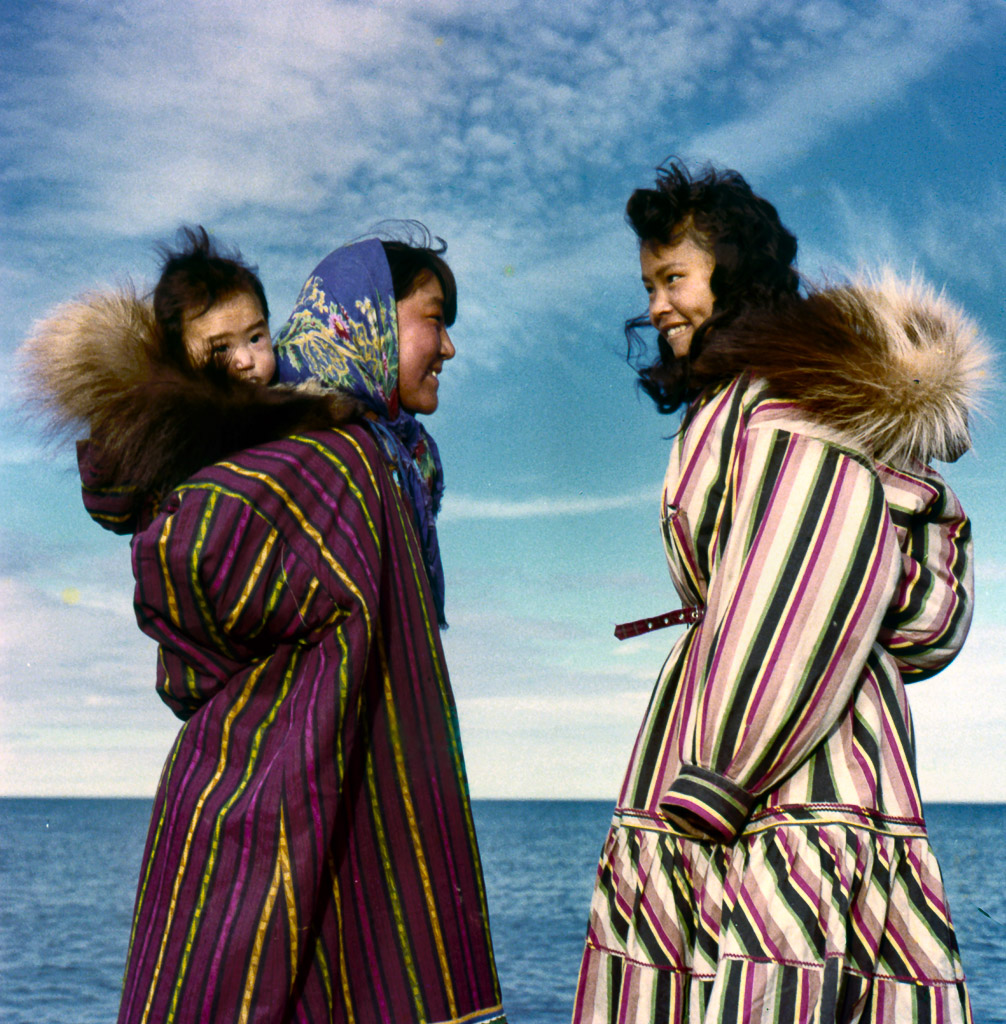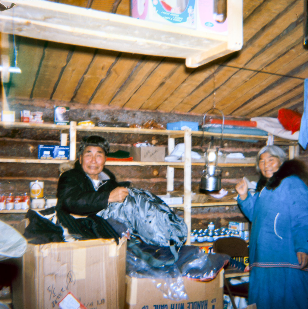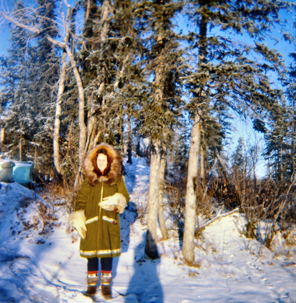 1967? Lorene in parka mukluks and wolf head mittens near our house.