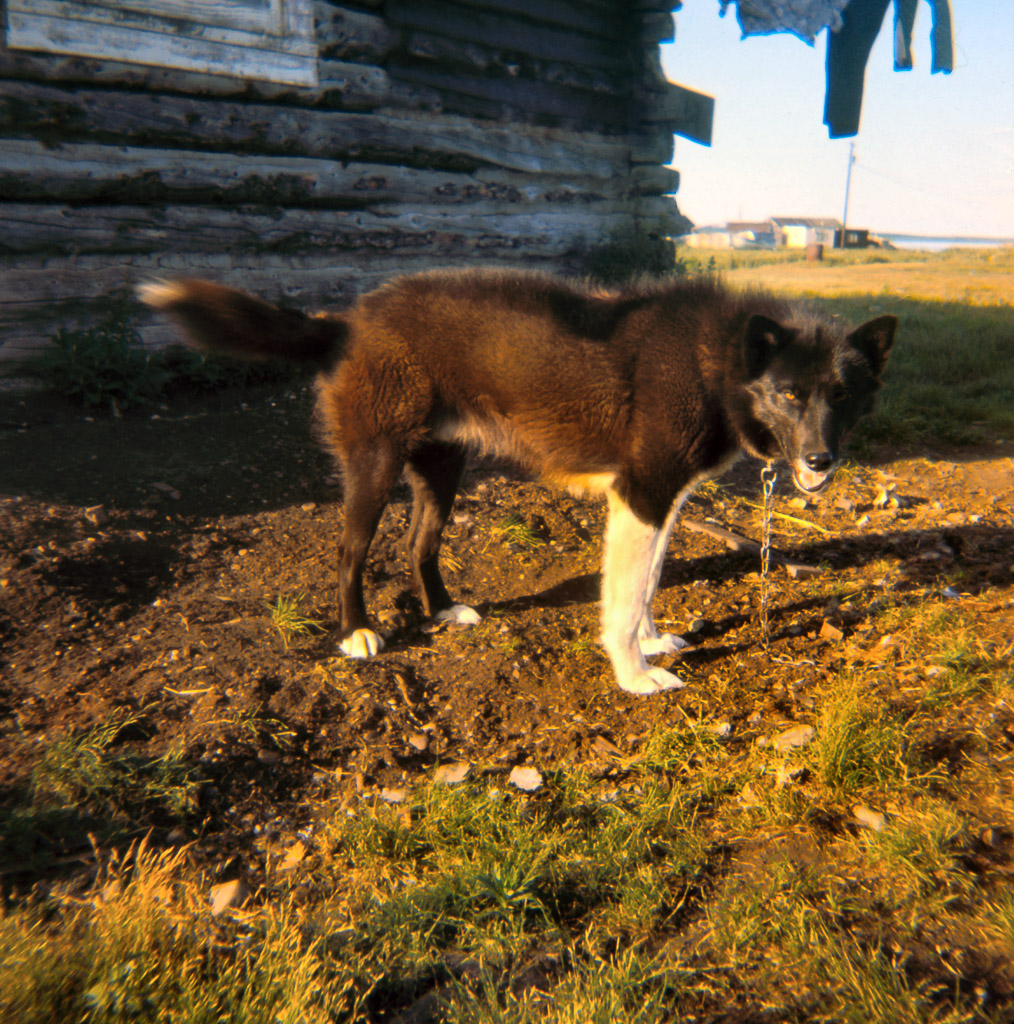 1960s Our dog named Sno-Traveler near Lena Saterlees Kotzebue house where we stayed several summers.