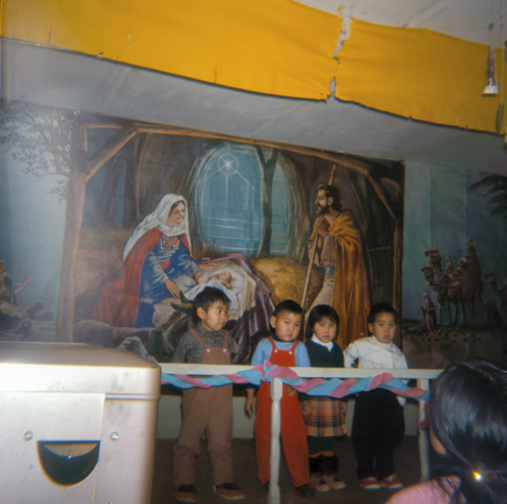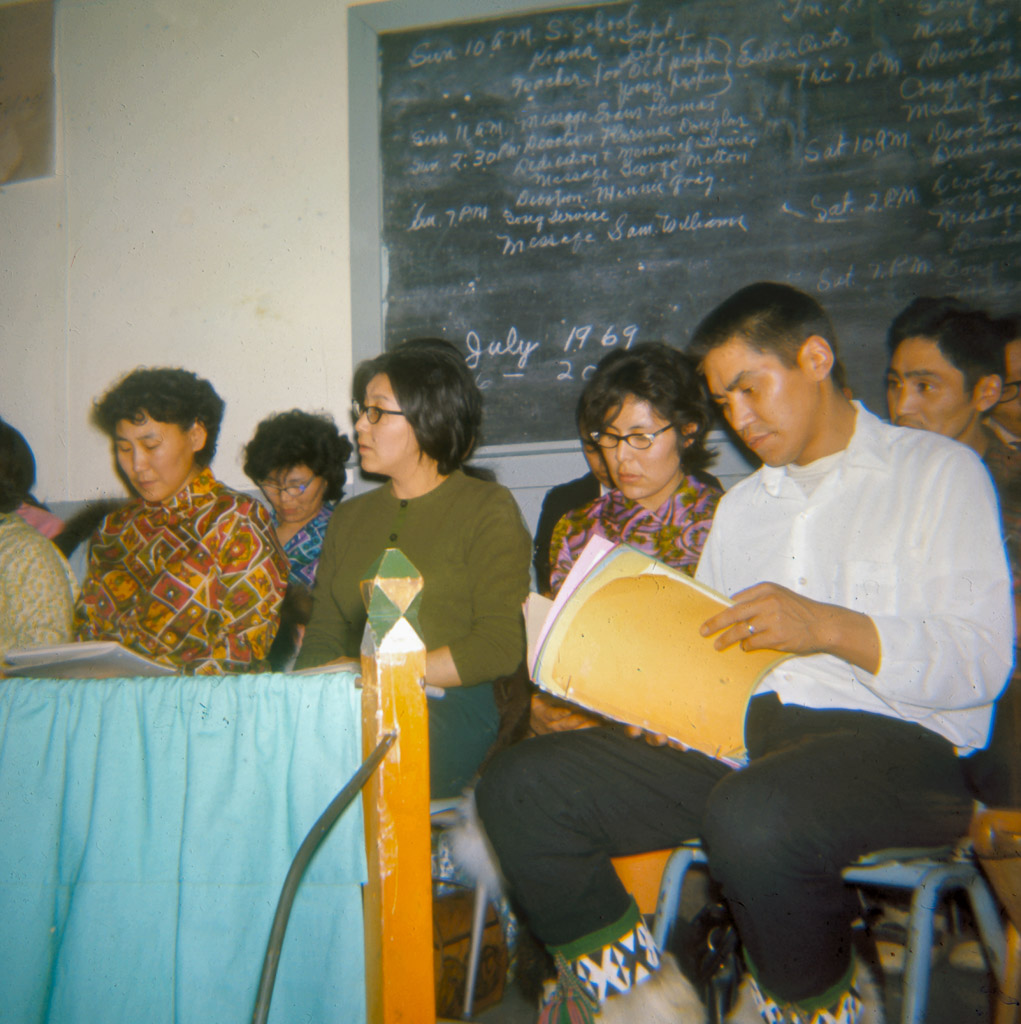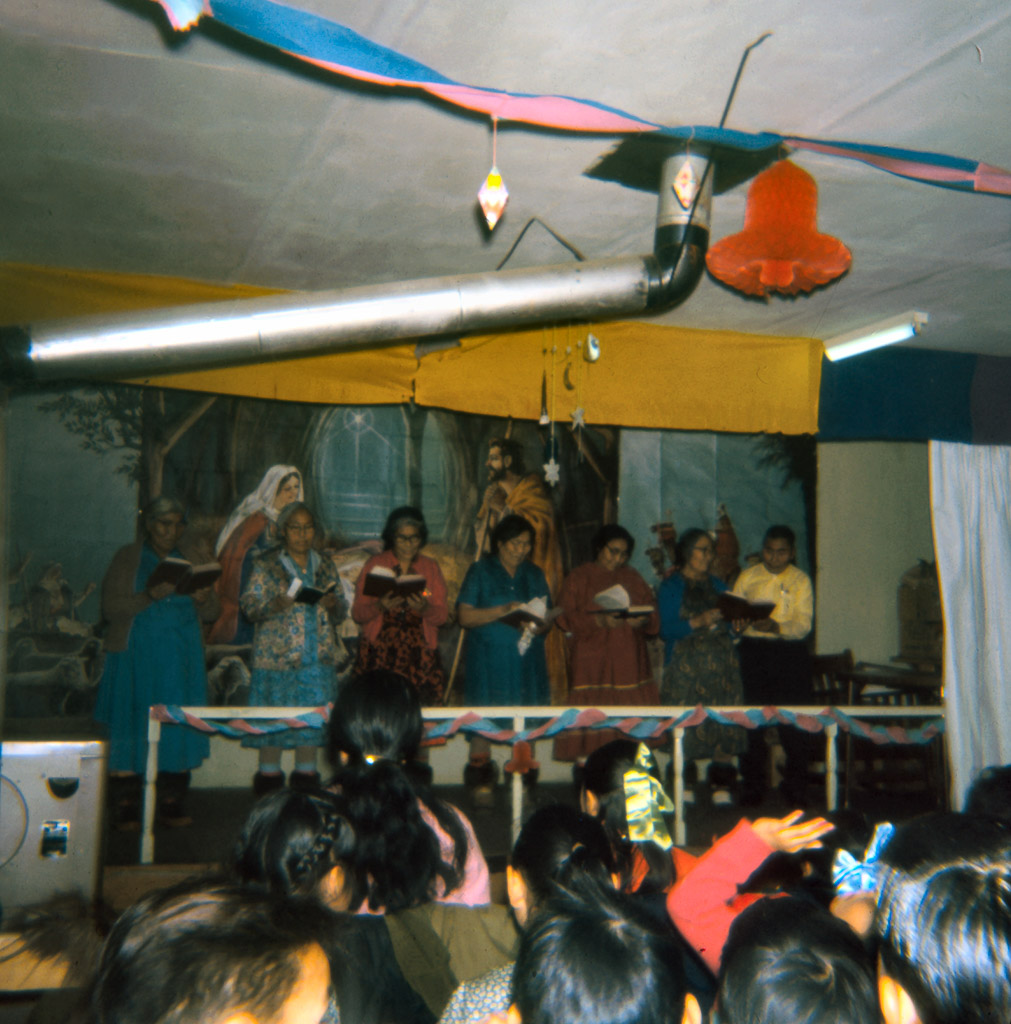Late 1960s Christmas program at church. L to R: Maude Cleveland, Gladys Downey, Olive Cleveland, Maude Foxglove, Minnie Gray, Dora Johnson, Jacob Johnson.