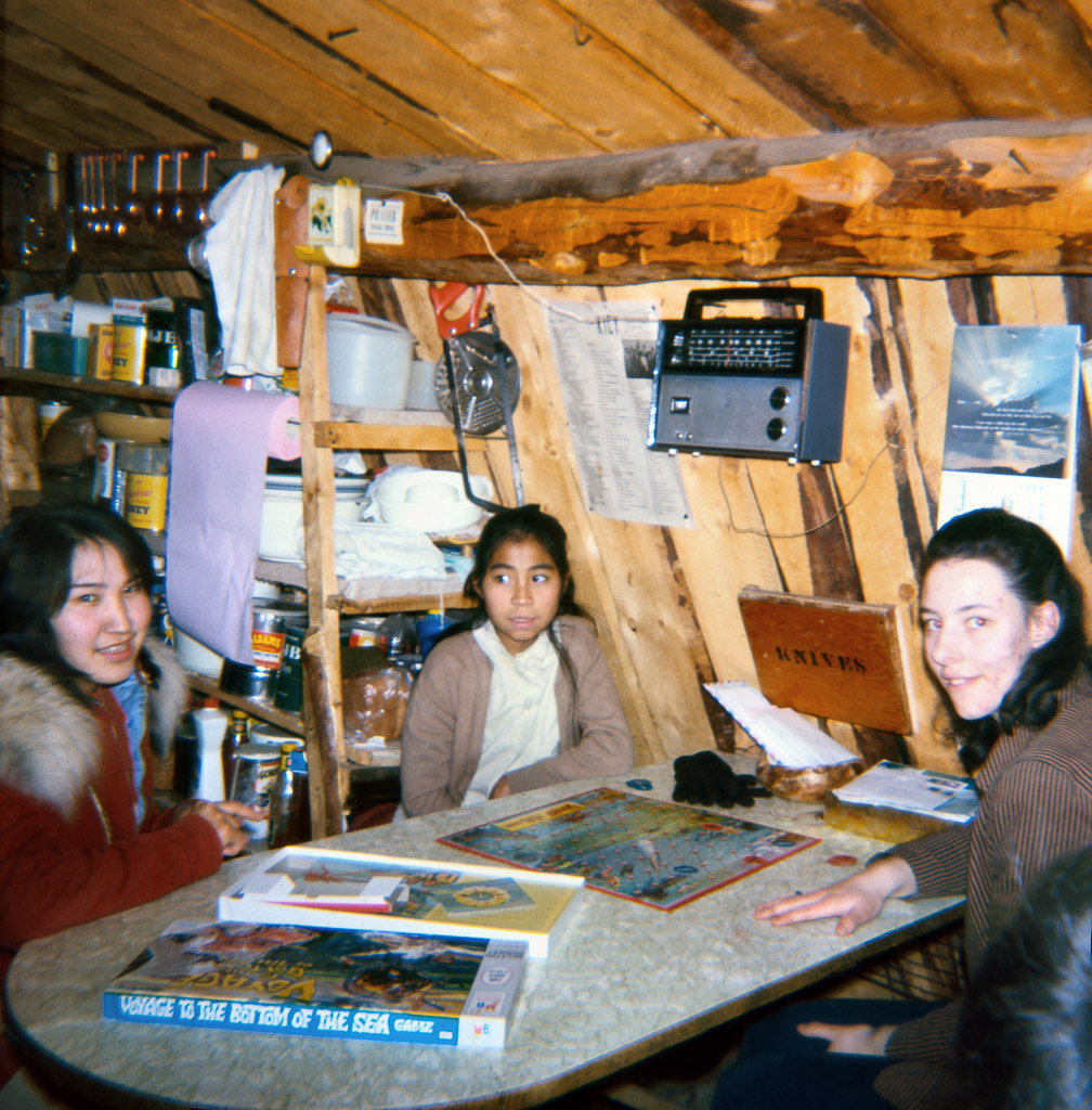 1967 Dorene with Rosa Downey Emily Douglas playing a game at kitchen table.