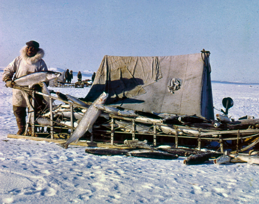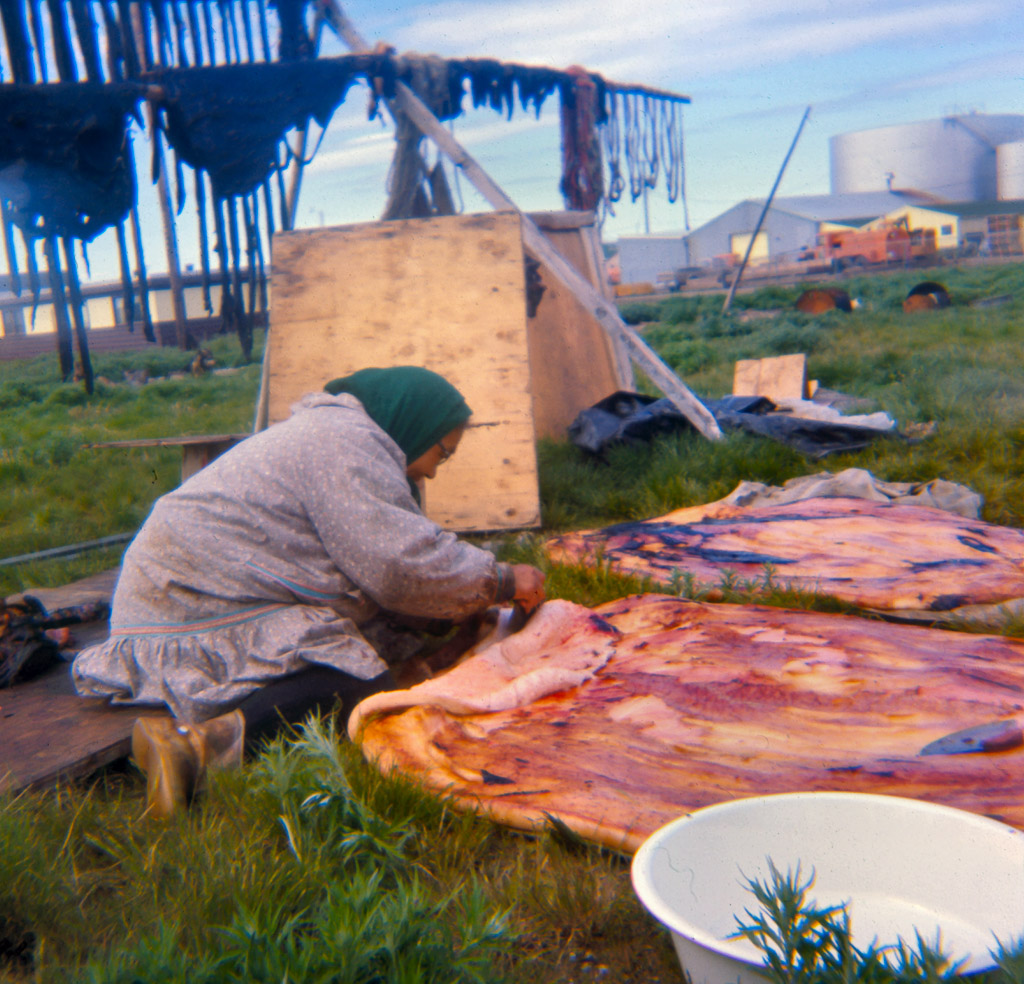 1960s Taking blubber off the skin.Kotzebue.