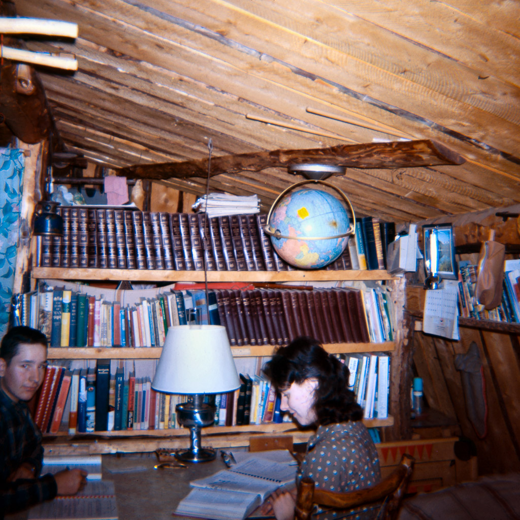 1967 Dorene with Rosa Downey Emily Douglas playing a game at kitchen table.