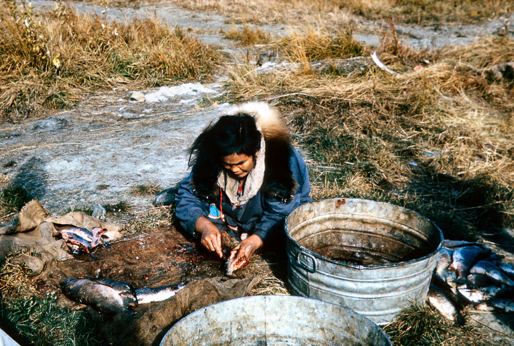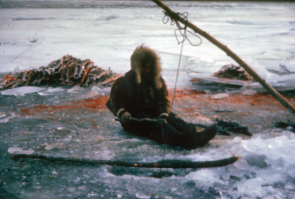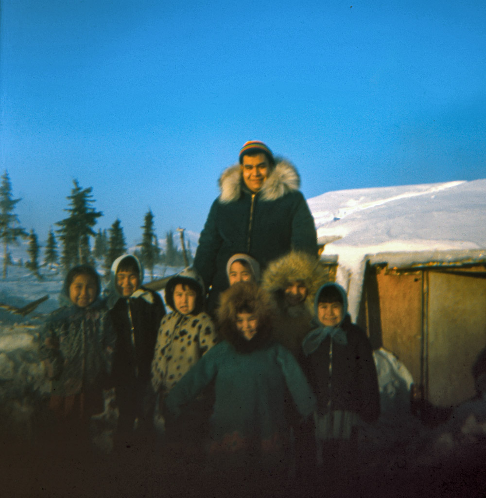 Photos » 1955-1969 Lorenes Alaska slides Late 1960s Lena Saterlee and Jimmy Jones and us moving up-river to Ambler. Perehaps Shield Downey behind Bob, Carie Uhl to the left washing plates Oliver and Lorene-Oliver ready to fly to Ktz. Late 1960s Gary and Christmas tree in our house. 1966 Oliver and Lorene Cameron Family standing in front of our first sod igloo in Ambler. Cora Cleveland (married to Truman) cutting fish. 1960s Midnight sun in front of Kotzebue. Head Start teacher and kids. 1960s Meal time in Kiana. Dora Johnson on the left. Eating frozen fish, dried fish, and seal oil. 1965? Nelson Griest fishing. 1967 Falltime. Looking across Kobuk River. ◄ 1 ... 3 4 5 ... 9 ►