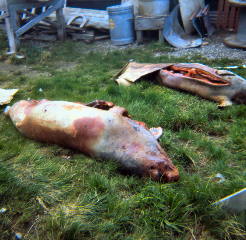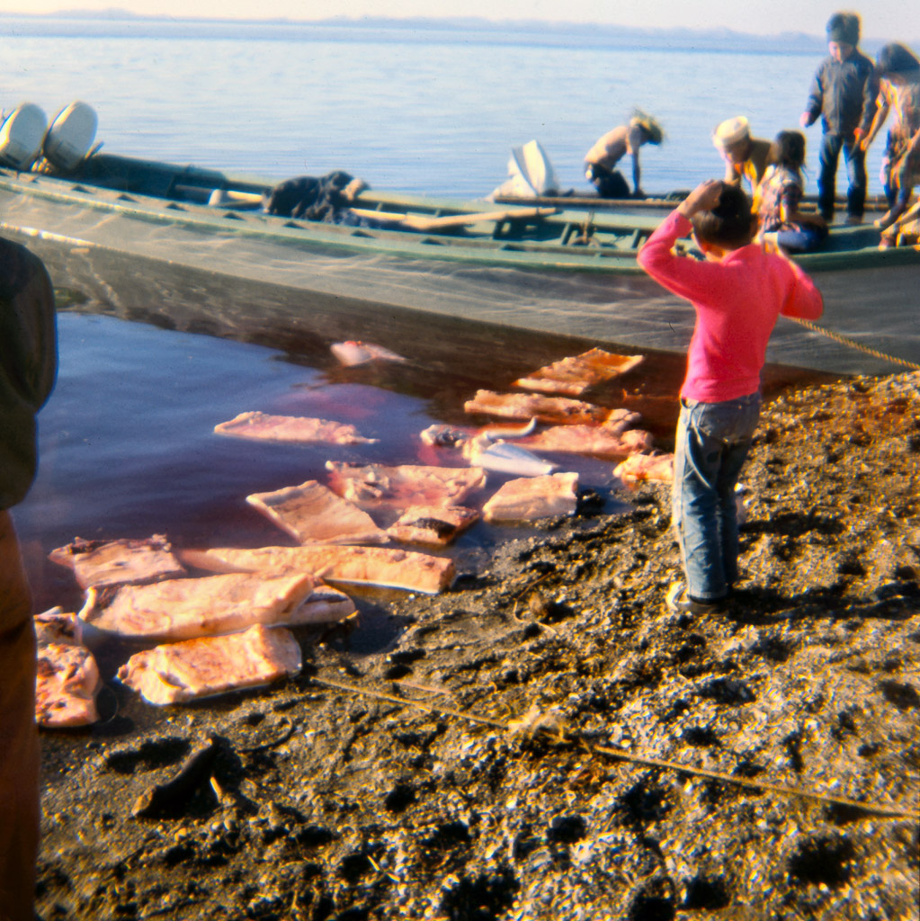 1960s Washing muktuk ( white whale blubber and skin) in Kotzebue sound.