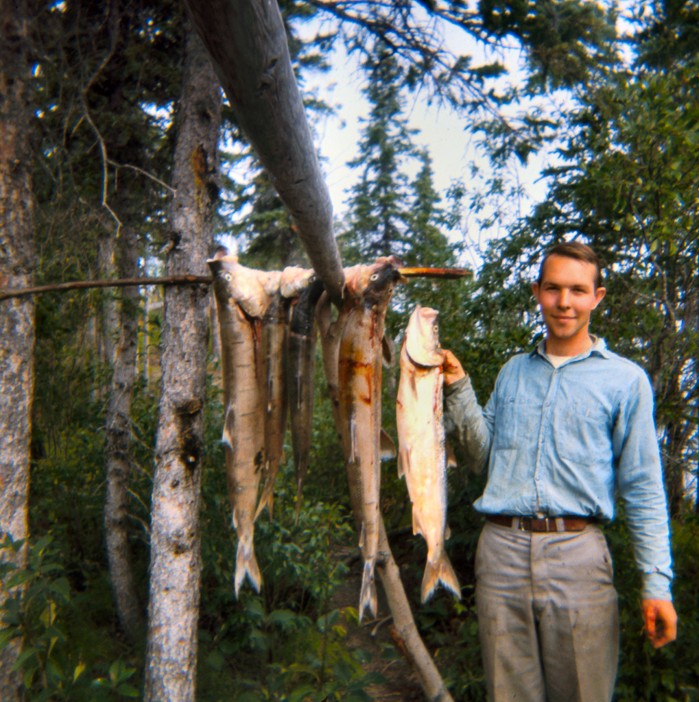 1965 or 1966 Richard Cameron with Sheefish on our Ambler property.