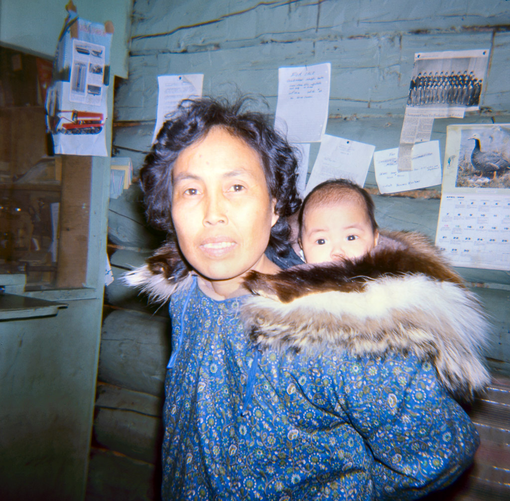 1966 Oliver and Lorene Cameron Family standing in front of our first sod igloo in Ambler.