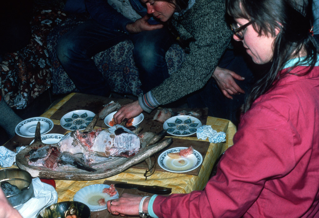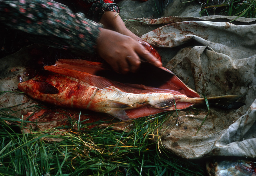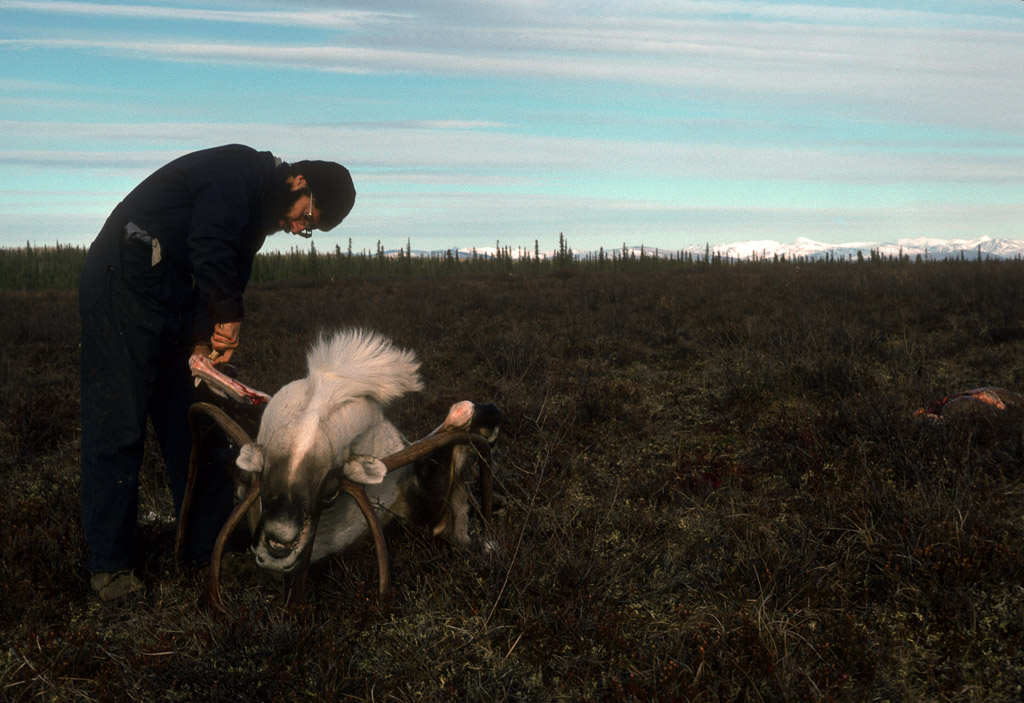 Dan Denslow butchering a freshly hunted caribou on tundra