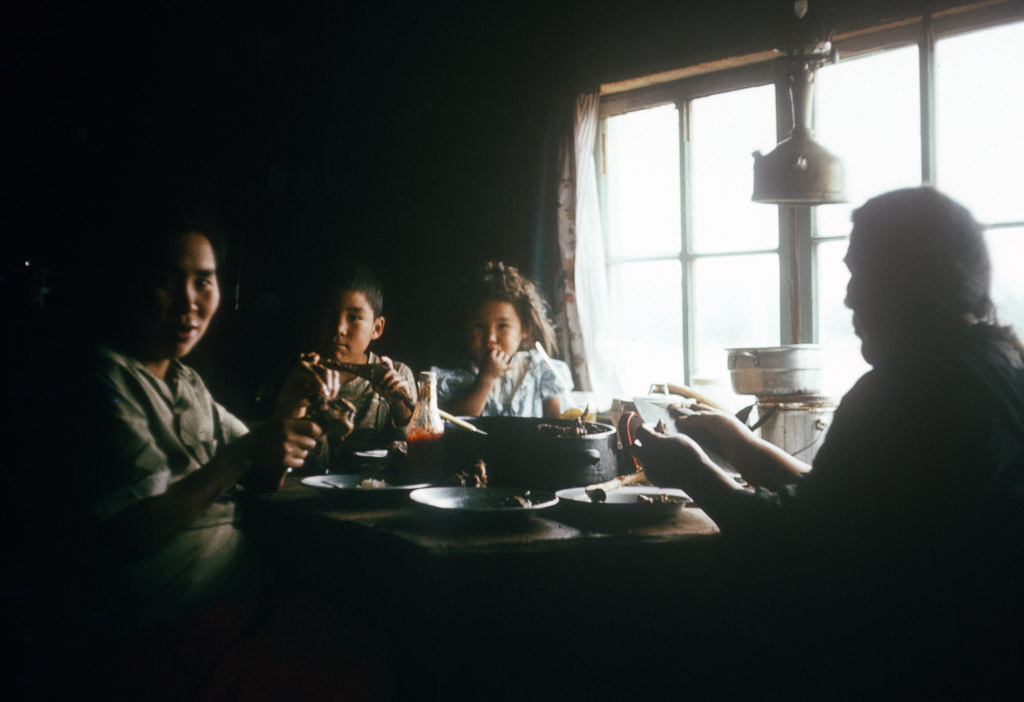 Photos » Joyce's Alaska Photos cranberries Dan cutting firewood with a chainsaw Dan Denslow butchering a freshly hunted caribou on tundra Kalle in Sasha’s garden ski racing birch bark baskets sitting on the snow Dorene and Mara From Joyce Keith Jones and family in boat wall tent Dora Douglas with two kids, Maude Cleveland on the right Rein’s picture of Oliver Cameron and Sasha Wik stopping for a tea break while out berrypicking aerial photo of a herd of caribou on snow 1966. Ole’s brother Gary (left) and Dan at Katmai national park in 1966. 1 2 ... 10 ►