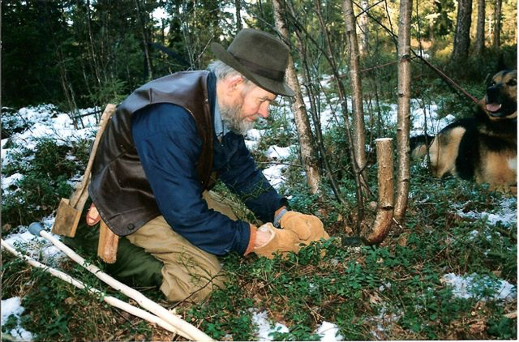 Oliver's combination tool. (running on a slant from top left to lower right) Heidi laid the tools out on the cloth, and Rein took the photo in Ambler 1981. Ole says, it's made out of scrap steel, and has multiple purposes: ordinary chisel, side-cutting chisel, machete, froe and drawknife. Oliver gave an fascinating explanation of how he made it out of an old chain saw bar, and explanations of how he used it for various tasks. This tool is a beautiful demonstration of his handiwork, ingenuity, lifestyle, and more. Heidi says: I wanted a picture of all of Olivers selfmade tools so we put them on a peace of cloth on the snow outside the entance of Olivers cabin. We took a few pictures where we changed the tools around. I have the tool to tan hides with here in Norway. I also have two ulus. One Oliver thought me to make when we where in Ambler and one he thought me to make in Norway. From Heidi's email of 12-7-12