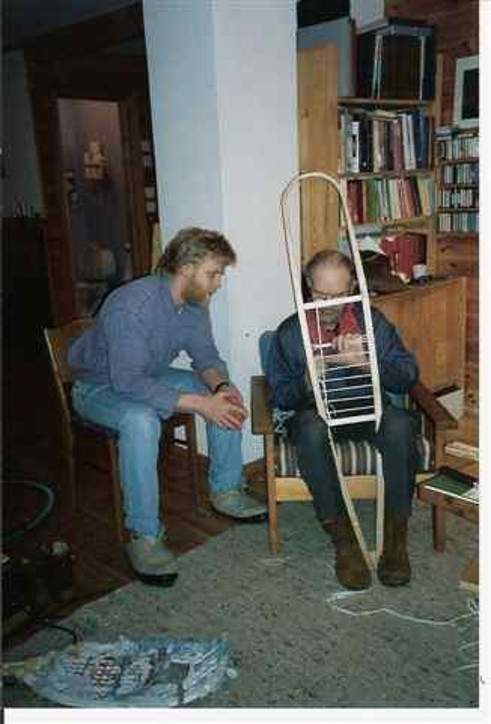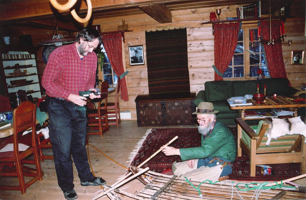 Heidi laid the tools out on the cloth, and Rein took the photo in Ambler 1981. I wanted a picture of all of Olivers selfmade tools so we put them on a peace of cloth on the snow outside the entance of Olivers cabin. We took a few pictures where we changed the tools around. I have the tool to tan hides with here in Norway. I also have two ulus. One Oliver thought me to make when we where in Ambler and one he thought me to make in Norway. From Heidi's email of 12-7-12
